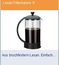 Ich möchte noch einmal klarstellen: Ich koche mit dem obigen Gerät meinen Kaffee - 2 große Tassen! Hierzu verwende ich Espressokaffee z.B. von Lavazza Das wird auch in Gaststätten angeboten als sogenannter Caffee-Crema oder auch Schümmli-Kaffee!! Der Geschmack ist deutlich besser und auch magenschonender als Filterkaffee :-) Wolfgang