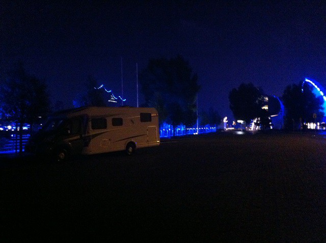 Wer ein Ticket für das Musical an diesem Tag (egal ob König der Löwen oder das Wunder von Bern) hat, kann an diesem Tag den Stellplatz wann immer er möchte anfahren und dort für 1 Nacht stehen bleiben. Der Ausblick ist toll, die Lage zum Musical klasse, besonders wenn man einen Hund dabei hat. Dann kann man in der Pause schnell mal nach dem Rechten sehen.