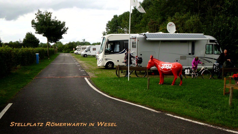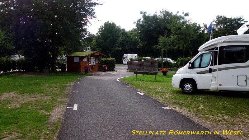 es sind 26 Stellplätze, alle mit Strom versorgt - längeres Kabel ggf. notwendig-. Anschluss max. 1000 Watt. Platzgröße sehr großzügig 10 - 11m lang, 6,50m breit! Preis pro Platz: 1.4. bis 30.9. € 8,--; 1.10. bis 31.3. € 6,--. Strom pauschal € 2,--/24 Std. Gezahlt wird auf Vertrauensbasis per Briefumschlag, der in einen Schlitz geworfen wird. Wasser an V+E Säule 90 L für € 1,--, auch in € 0,10 zapfbar. WC- und Abwasserentleerung kostenlos. Duschen im Sommer im "Rheinbad" für € 1,50, sonst im "Welcome-Hotel" für € 2,--. Koordinaten laut Prospekt: 51° 39' 39'' N und 6° 35' 31'' O. Zum Rhein geht man etwa 200m, in die Stadt sollen es 15 Geh-Minuten sein. Samstag und Sonntag angebl. Bäckerservice. Waren vom 27.04. bis 30.04.2013 auf dem Platz. Es hat uns dort super gefallen.Der Platzwart hat ein Grillen und eine Fahrradtour organisiert.Der Platz wird vergrößert.Schotter und Straße sind schon fertig.Zur Stadt sind es mit dem Rad höchstens 10Min. Die Gegend ist sehr schön zum wandern und Radfahren. ![]() Hier kann man die Erweiterung sehen. ![]() Vorne ist die Blockhütte wo man sich anmelden kann.Dort gibt es auch viel Informationsmaterial.Sind dort gerade am grillen. ![]() Hallo.Wir finden nicht ob WC und Duschen vorhanden sind.Kann uns jemand antworten?Würde gerne mal hin fahren. Hallo Dusche und WC gibt es dort nicht. Wir waren vor ein paar Wochen auch dort. Bedingt durch das Straßenpflaster und den vorbeifahrenden Autos fanden wir den Platz im (neuen) vorderen Bereich sehr laut. Ansonsten ist das Umfeld O.K. LongJohn Man kann wohl die Duschen im Hotel benutzen. Hallo, mittlerweile gibt es zum Stellplatz eine eigene Webseite, mit vielen neuen Informationen. Ich füge diesen Link hier mal ein. --> Link Viel spass dabei. Fendi. Ist der Platz denn am Rhein? Ja man kann ihn vom Stellplatz sehen [quote="udob"]Ja man kann ihn vom Stellplatz sehen[/quote] na ja, mit viel gutem Willen und vom Dach, sind doch mindestens 500m bis zur Promenade und Gebäude zwischen Stellplatz und Väterchen Rhein Hier mal ein paar aktuelle Bilder vom Stellplatz: ![]() Inzwischen ist der Platz zur wenig befahrenen Straße recht gut durch eine Hecke abgetrennt. ![]() Der fast rechtwinkelig angelegte Stellplatz kann bis zu 39 Fahrzeuge aufnehmen. Die einzelnen Stellflächen auf Rasen oder Schotter sind durch weiße Linien am Fahrweg kenntlich gemacht oder z.T. durch Bretterzaun getrennt. ![]() In dem Holzhaus ist die Anmeldung, bzw. man zahlt die Gebühr, indem man die in einem Kasten ausliegenden Anmeldescheine ausfüllt und zusammen mit 9,- € Platzgebühr pro Tag in einen Umschlag steckt und in einen Schlitz am Holzhaus einwirft. Am Häuschen liegen auch diverse Flyer mit Stadtplan, Radtourenvorschläge u.a. aus. ![]() Über mehrere Stomsäulen mit bis zu 6 Steckdosen kann jedes Mobil mit Landstrom versorgt werden. Für je 1,- € gibt es max 1200 kwh Strom, längstens jedoch für 24 Std. Teilweise benötigt man jedoch ein langes Kabel. ![]() Angrenzend an den SP liegt der PKW-Parkplatz, auf dem nochmals 12 Notplätze für Womos ausgewiesen sind. ![]() Am Pkw-Bereich steht auch die V+E-Anlage an der Zufahrt zum Stellplatz. Für SP-Gäste ist die Entsorgung kostenlos, Wasserentnahme kostet 1,- für etwa 90 lit. Kleinmenge 9 Lit. für 0,10 € ist auch möglich. Die Grauwasser-Entsorgung ist über eine große überfahrbare Roste möglich, WC-Cassette wird durch eine kleine Klappe an der Säule entsorgt. Spülen der Cassette ist möglich. ![]() An den SP angrenzend befindet sich das Welcome-Hotel "Rheinresidenz Wesel", dort kann der SP-Gast abends Brötchen für den nächsten Tag bestellen. Ebenfalls können die behindertengerechten WC´s benutzt werden oder gegen 2,- € Gebühr die Dusche benutzt werden. Einfach im Hotel an der Rezeption melden ( so steht´s in der Platzordnung ). Ebenfalls können die Duschen im angrenzenden Rheinbad zu den Öffnungszeiten in den Sommermonaten gegen 1,50 € Gebühr genutzt werden. Etwa 200 m sind es vom Platz an den Rhein und die Rheinpromenade ![]() In die Innenstadt von Wesel dauert es zu Fuß etwa 15 Minuten. Restaurants befinden sich am Stellplatz und am Yachthafen etwa 200 m entfernt. Radwanderwege mit verkehrsarmen Strecken oder auch Radwege ohne Autoverkehr laden zu schönen Touren ein. Der nahe Auesee kann auch per Rad umfahren werden und läd auch zum Baden ein. War gerade aud dem Weseler Stellplatz. Die Lage ist ideal zum Radeln. Am Rhein, den Altarmen oder den vielen Seen in der Umgebung ein herrliches Naturelebnis. Bis zur Weseler Innenstadt enige Minuten mit dem Fahrrad. Die Straße, die am Stellplatz vorbei führt wird bis zum späten Abend von vielen Fahrzeugen genutzt, daher aus entsprechend laut. Dr Ausweichplatz direkt am Stellpatz wird zum Wochenende hin und wieder für Veranstaltungen z.B Zirkus Flic Flak. Der Platz Ist im Bereich zur Straße ( s. Bild) sehr laut. Am Abend durch Autos mit Musik besonders bis in die späte Nacht, auch bedingt durch die Fahrbahnschwellen der Straße. WiFi nur im Bereich der Anmeldung gut möglich. Juli 2020 / CZ100 ![]() Betreiber sind jetzt die Stadtwerke. Der Preis hat sich von 11€ auf 20€ geändert. Die Stellplatzgebühr von 20 Euro umfasst jetzt den Eintritt ins neue Schwimmbad für 2 Stunden täglich pro WoMo, also auch mit zwei Personen. Außerdem gilt : Bei Anreise Sonntag oder Montag 3 Tage bezahlen - 4 Tage bleiben. Da schon alleine der Eintritt ins Schwimmbad für 2 Stunden Einzelticket 5.50 Euro kostet finde ich die neue Gebühr gerechtfertigt. |