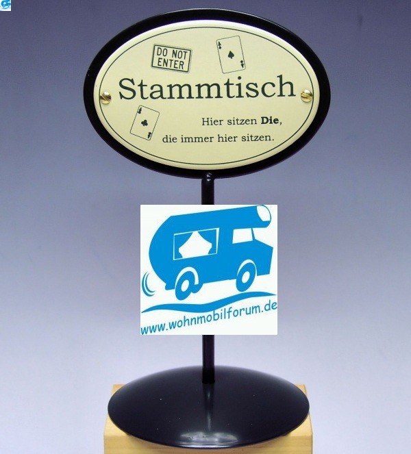 Hab aber noch soviel zu tun, wir starten direkt von der Messe in den Urlaub.... So ich war zwischen Womo packen und Womo waschen fleißig und hab ganz schnell ein Wohnmobilforum.de Stammtisch Schild gebastelt!