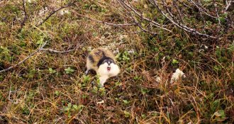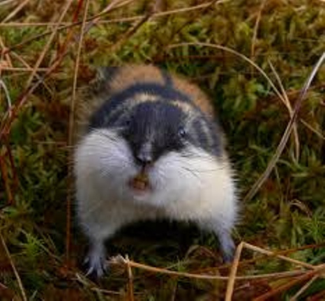 An mal pullern oder ein häufchen machen war überhaupt nicht zu denken,das gepiepse war viel zu interessant,sofort erwacht der jagdinstinkt und es wird intensiv zwischen den niedrigen büschen und moosen rumgeschnuppert. Das gepiepse kommt von den vielen Lemmingen,welche in diesem jahr seit dem zeitigen frühjahr eine bestand?plosion durchgeführt haben.Wo man geht und steht begegnet man diesen kleinen nagern,welche zu den wühlmäusen gehören und aussehen wie ein kleiner feldhamster.Allerdings sind sie sehr aggressiv,mutig und stellen sich jeder gefahr.Als womobesatzung findet man sie auch zu massen überfahren auf den strassen. Nicht auszudenken wenn unsere Vicky mit so einem kleinen einzelkämpfer bekanntschaft macht und dabei eventuell auch noch den kürzeren zieht. Ich will die sache nicht provozieren und der hund wird am womo außen angeleint und soll aufpassen das wir von dieser invasion nicht überrollt werden. Einige bilder von Lemmingen: