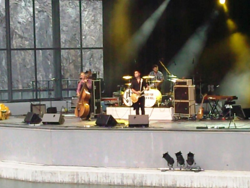 Auffallend war die vielen toilettenmöglichkeiten,so das es auf diesem gebiet keine engpässe geben sollte. Auf der infotafel mit dem sitzplan war zu lesen,das es über 5000 sitzplätze sein sollen und die akkustik auf allen plätzen hervorragend sein soll. Im laufe des abends füllten sich dann die sitzplätze,aber insgesamt war es nach unserer schätzung lediglich zu 2/3 gefüllt. Pünktlich 20.00 uhr begann dann das konzert mit der ersten vorgruppe - so eine art Elvis Presly-abklatsch,und so war auch die musik.