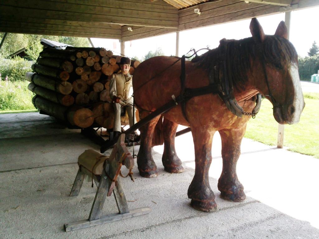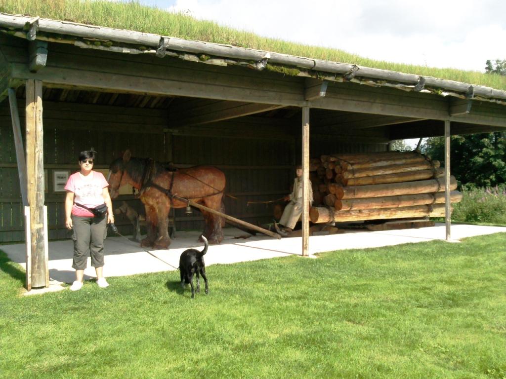 Man kann dort alten aus der umgebung zusammengetragenen holzgebäude betreten,welche auf verschiedene art ausgestattet sind - schmiede,backhaus,stallungen,scheune,wohnhaus usw. Draussen stehen alte maschinen und werkzeuge. Besonders interessierte uns eine alte traditionelle methode des holztransportes.