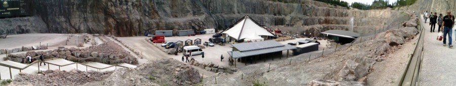 das zweite foto ist von der gegenüberliegenden seite ![]() Als wir dann einmal rundrum waren gelangten wir wieder zum einlass- und infogebäude mit einem kleinen steinbruchmuseum und andenken- und eis verkauf.Es wurde ein kleines souvenier,ein paar ansichtskarten und zwei eis- gekauft und das eis gleich im schatten hoher bäume aufgeleckt.