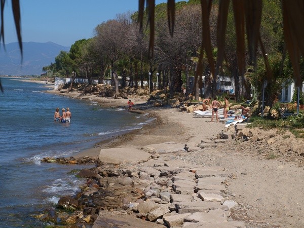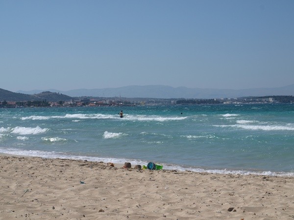 Heute ist der erste Chillingtag auf dem Campingplatz. Zu unserem Erstaunen ist eine Nutzung des Pools in der Nachbaranlage Denizati nicht wie im Internet überall angepriesen möglich, was uns schon etwas enttäuscht. Aber in den südlichen Ländern sind Nachbarschaftsfeten eben konsequent und werden ohne Rücksicht auf Verluste geführt. Also geht’s an den Strand und der ist nicht schlecht, man kann ihn eigentlich mit dem Strand in Meltemi bei Gythio vergleichen: Sand/Kies-Strand, der ziemlich schnell tief wird. Aber das Wasser ist sehr klar. Baden macht Spaß!