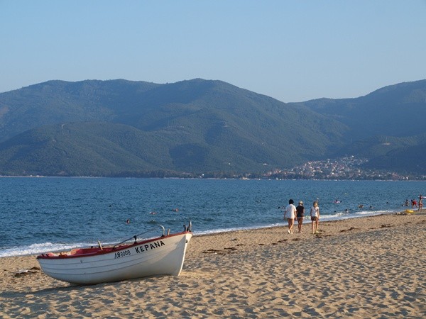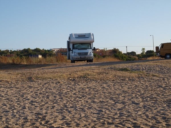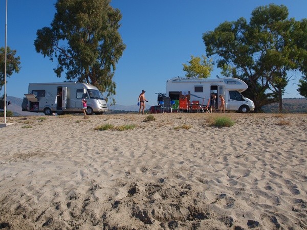 Kurz nach Thessaloniki muss Hans-Peter tanken und wir verlassen die Autobahn am Volvi-See. Nach kurzem Tankstopp entschließen wir uns, im angrenzenden Vrasna an den Strand zu fahren, um dort zu übernachten. Nach kurzem Suchen haben wir ein sehr schönes Plätzchen gefunden und alle gehen noch etwas schwimmen oder Ball spielen. Abends wird dann noch gemeinsam gegrillt und bei Wein und Aperol-Spritz sitzen wir noch gemeinsam zusammen.