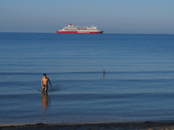 Heute ist ein trauriger Tag, da die Abreise und somit das nahe Ende des Urlaubs bevorsteht. Nach dem Frühstück gehen die Kinder noch einmal kurz baden und Christine und ich erledigen die notwendigen Aufräumarbeiten. Irgendwie zieht sich heute alles in die Länge und es wird 12.00 Uhr bis wir auschecken. Wir löhnen 166 € für 4 Übernachtungen auf den Camping Lichnos und ziehen weiter in Richtung Igoumenitsa. Gegen 13.00 Uhr treffen wir am New Port von Igoumenitsa ein und erledigen unsere Formalitäten im dortigen neuen Port-Office-Gebäude. Nachdem wir die notwendigen Papiere erhalten haben und wir als Boardingzeit 19.00 Uhr bekommen haben, fahren wir abschließend noch einmal an den Drepano-Beach zum Schwimmen. Dort gehen aber lediglich die Kinder ins Meer; Christine und ich ziehen es vor, am Womo zu bleiben. Irgendwie herrscht eine seltsame Stimmung. Da keiner mehr Lust auf ausgiebiges Sonnen und Baden hat, beschließen wir kurzfristig, noch einen letzten Kaffee Frappe in Igoumentisa zu trinken. Dort angekommen, finden wir eine nette Bar und haben Glück, denn alle Getränke schmecken super. Wenig später fahren wir dann Richtung Hafen, finden aber die Einfahrt erst nach viermaligem Abfahren der Strecke, da die Zufahrt irgendwie komisch abgesperrt war. Wir also rein in den Hafen und bereits nach wenigen Metern werden wir von der Hafenpolizei angehalten und wieder aus dem Hafen verwiesen. Hinweis des Polizisten: Entrance at 6 o’clock! Jetzt wissen wir auch, wieso die Zufahrt so komisch abgesperrt war. Also geht’s noch einmal raus aus dem Hafen und eine Stunde in der Sonne bei 35 Grad im Schatten warten. Kurz vor 18.00 Uhr setzt sich die Kolonne in Richtung Hafeneinfahrt in Bewegung, der wir uns dann auch anschließen, so dass wir wenig später vor unserem Abfahrtsgate stehen und auf die Fähre warten. Mit einer Stunde Verspätung laufen wir um 21.00 Uhr aus dem Hafen aus und schwitzen wie verrückt, da wir keinen Fensterplatz bekommen haben. Aber auch diese Nacht wird vorübergehen.