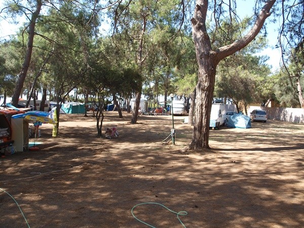 Heute geht’s weiter. Also gefrühstückt, Sachen gepackt und dann könnte es losgehen…. Wenn da nicht ein kleines vierbeiniges Katzenkind wäre, das unsere CP-Nachbarn letzten Abend von der Straße gerettet haben. Christines Mutterherz hat gleich höher geschlagen und schon war die Katze adoptiert! Futter haben wir ja von Finn, also gleich mal gefüttert und die Kleine hat das Ganze verschlungen wie wenn es ihr erstes Essen seit Tagen gewesen wäre. Anschließend hat sich die Kleine unter das Womo verkrochen und Christine hat sie nach einigem Suchen auf dem Abwassertank gefunden. Wir wären niemals gefahren, wenn wir nicht gewusst hätten, wo sich die kleine Maus versteckt hat. Da wir uns aber alle einig waren, kein Katzenkind zum jetzigen Zeitpunkt mitzunehmen, musste sich Christine schweren Herzens wieder von dem Katzenkind trennen und wir haben sie zu den ortsansässigen Katzenkindern auf dem CP gebracht. Da hat sich Christine schon ein paar Tränen verdrücken müssen. Also ging es nach einiger Verzögerung weiter mit dem Ziel: Ilica Plaji bei Cesme. Knapp zwei Stunden später kommen wir auch dort an und schon geht’s in die Fluten. Die Reiseführer haben nicht zuviel versprochen: man kommt sich hier vor wie in der Karibik. Schneeweißer Sand und türkisfarbenes Meer mit schönen Wellen! Da könnte man es aushalten, aber leider gibt es hier keinen Stell- oder Campingplatz. Also entschieden wir uns, abends auf den Altinkum-Strand zu fahren, der auf der gegenüberliegenden Seite der Landzunge sein soll. Wir kurven kreuz und quer teilweise durch engste Gassen, ehe wir ankommen. Doch dort wimmelt es an allen Ecken und Enden an Polizisten, so dass wir fragen, was denn los sei. Die Polizisten erklären freundlich, dass es in letzter Zeit vermehrt Vandalismus mit eingschlagenen Scheiben etc. in dieser Gegend gegeben habe und daher Präsenz gezeigt wird. Sie raten uns, auf einen nahegelegenen Campingplatz zu gehen, um sicher zu sein. Diesen Ratschlag nehmen wir gerne an und fahren wenig später auf einen sehr einfachen und richtig urigen CP, Kostenpunkt 15 TL inkl. Strom, Duschen etc.. Den Kindern gefällts nicht, aber für eine Nacht geht’s schon. Abends sitzen wir noch zum Abendessen vor den Womos und genießen den herrlichen Sternenhimmel, ehe der eh schon starke Wind noch stärker wird und wir uns in die Womos verziehen.