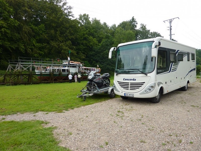 Von dort sind wir über Elblag in Richtung masurische Seenplatte gefahren, aber nicht ohne, in der Nähe von Paslek, am Oberländer-Kanal Station zu machen. Dort werden die Schiffe zur Überwindung der Höhenunterschiede an fünf Stellen über Land gezogen und wieder zu Wasser gelassen. Es gab dort einen nagelneuen, gebührenfreien Stellplatz, auf dem wir aus nächster Nähe die Landpartie der Schiffe verfolgen konnten. Klasse!