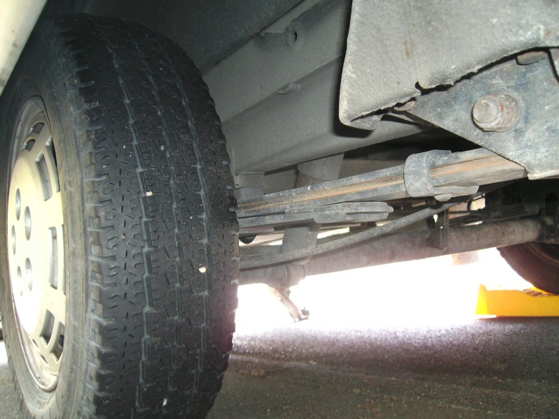 untern Federn bei unbeladenem Fahrzeug ohne Heckbox.
