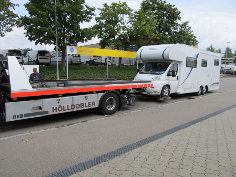 Meine Hauswerkstatt war auch sofort am Telefon und mußte nur erst einen großen Transporter besorgen der meinen 4,5 Tonner auch ziehen kann.