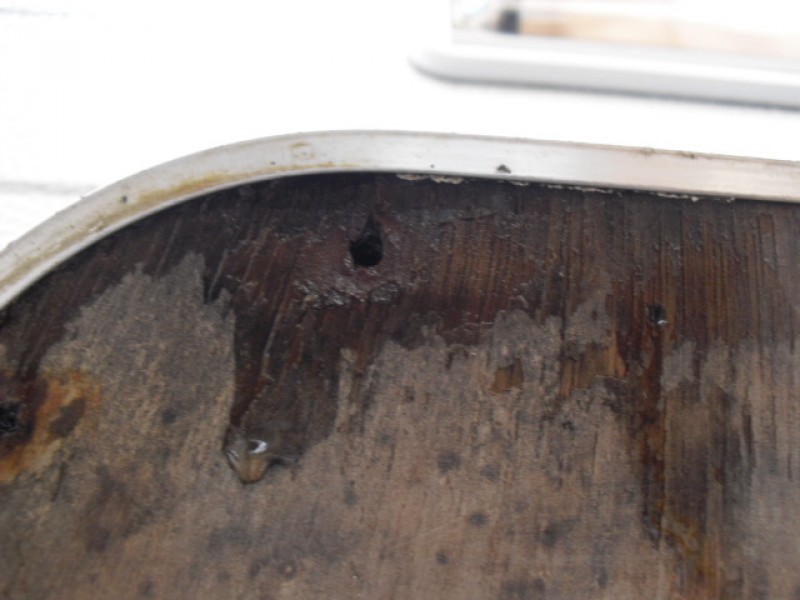 Wie man auf den Bildern sehen kann, ist die Klappe schon ziemlich morsch und feucht. Die Wand und der Boden sind aber Gott sei Dank nicht betroffen. Da ist alles trocken und fest. :freude: