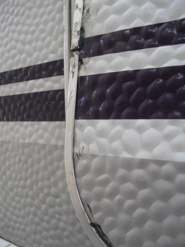 Wie ihr seht, haben wir versucht die Stoßstelle vom Aluprofil erst mit Silikon abzudichten und dann die Fuge mit Dekalin.