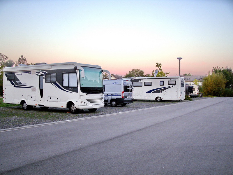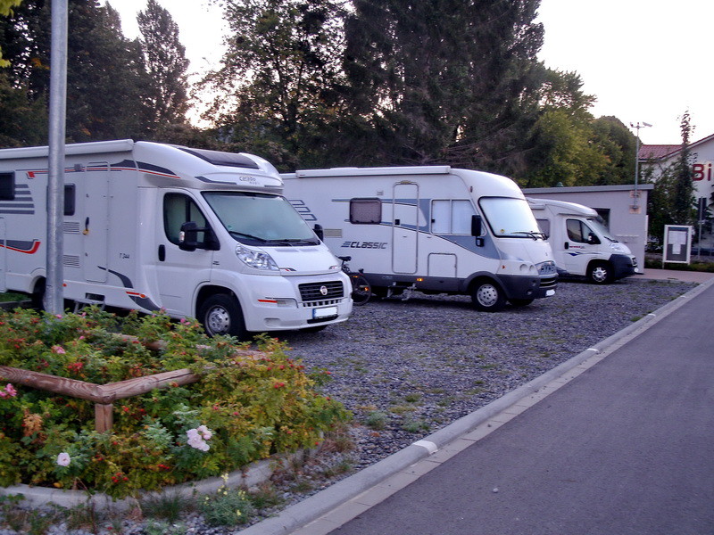 Alle SP sind auf Schotter und eben. Immer 4 Plätze teilen sich eine Stromsäule (0,5€ Münzen) Platzabstand ausreichend um auch Tisch und Stühle rausstellen zu können. Stellplatzgebühr wird über Parkscheinautomaten bezahlt - passend zahlen - keine Geldrückgabe (24h - 12€) Entsorgung kostenlos, Wasser gegen Gebühr. Morgens Parkscheinkontrolle durch Städt. Bediensteten.