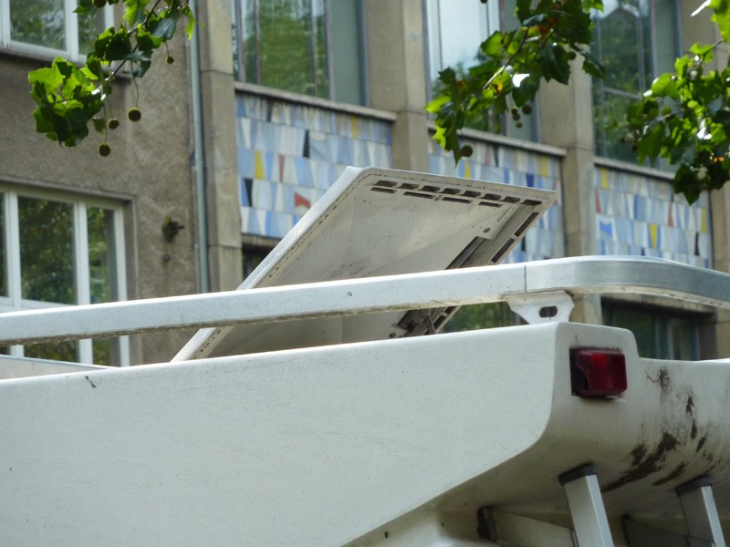diese drei außenspiegel... haha. fäääääääääääättttt. :daumen2: und was ist das da auf dem dach...über der fahrerkabine??? ****************** aber von welchen klappen du schreibst, verstehe ich immer noch nicht. die links von der tür? kannst du nicht noch mal ein paar meter näher rangehen, damit man das problem wirklich mal sieht...? mj Das auf dem Dach sind Solarpaneele.