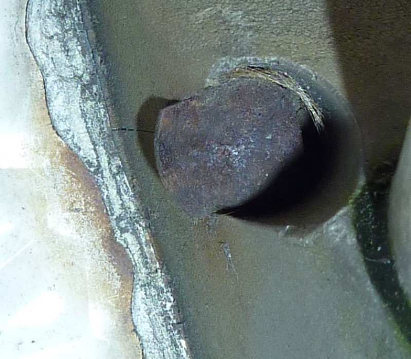 Wenn ich das richtig sehe, ist keine Schraube vorhanden, oder? Ich sehe nicht mal ein Loch...! In der linken Seite ist offensichtlich eine Art Nagel...???