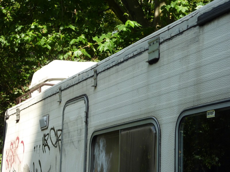 ![]() Ein ähnliches Problem habe ich auch an meinem Hymer B 534, nur sind da die beiden Entlüftungsbleche an den Rändern ganz wellig und sehr unschön aufgeschraubt.