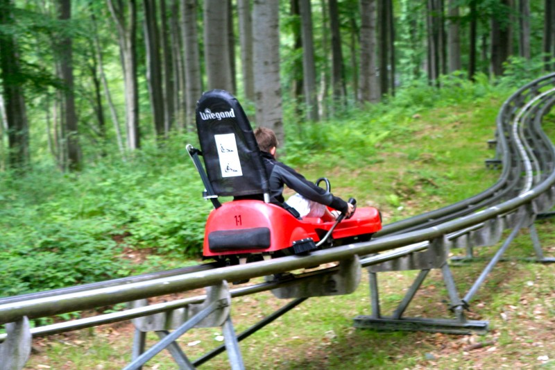 Am späten Nachmittag sollte es für Felix noch ein Highlight geben. Ziel sollte die am Hexentanzplatz gelegene Bobbahn der Seilbahnen Thale GmbH sein. Er durfte mit dem Bob knapp 1000 Meter hinunter ins Tal fahren. Ein Erlebnis der besonderen Art. Hat ihm sichtlich viel Spaß gemacht. Dies ist ein Tipp für alle kleinen und grossen Kinder.