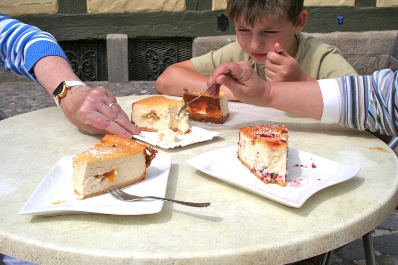 Somit ging es direkt zum Cafe Vincent "Die Käsekuchenbäckerei". Schon bei der Vorbereitung der Tour in den Harz haben wir uns nach diversen Reiseberichten auf diese Käsekuchenbäckerei gefreut. Es war der Hammer! Preis, Größe und Geschmack der Kuchen. Ein Stück Käsekuchen kostet stolze 3,90 €. Dafür bekommt man dort eine gigantische Auswahl an verschiedensten Käsekuchen. Aber nur Käsekuchen! Es hat richtig gut geschmeckt. Wir schwärmen noch immer davon beim Anblick der Fotos. Nach Angaben des Cafes schwankt die Anzahl der verschieden Variationen bei um die 130 Stück.