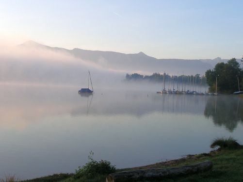 Wie schon befürchtet und gesagt.... der See liegt beim Morgengassi im Nebel. Zwar nicht so doll wie gestern der Kochelsee, aber immerhin.
