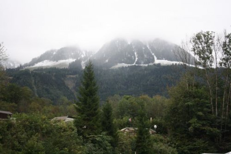 Gegen 13.00 checken wir auf dem Campingplatz Grafenlehen ein, finden einen Platz mit Blick auf die in den Wolken versteckten weiß gepuderten Berge,