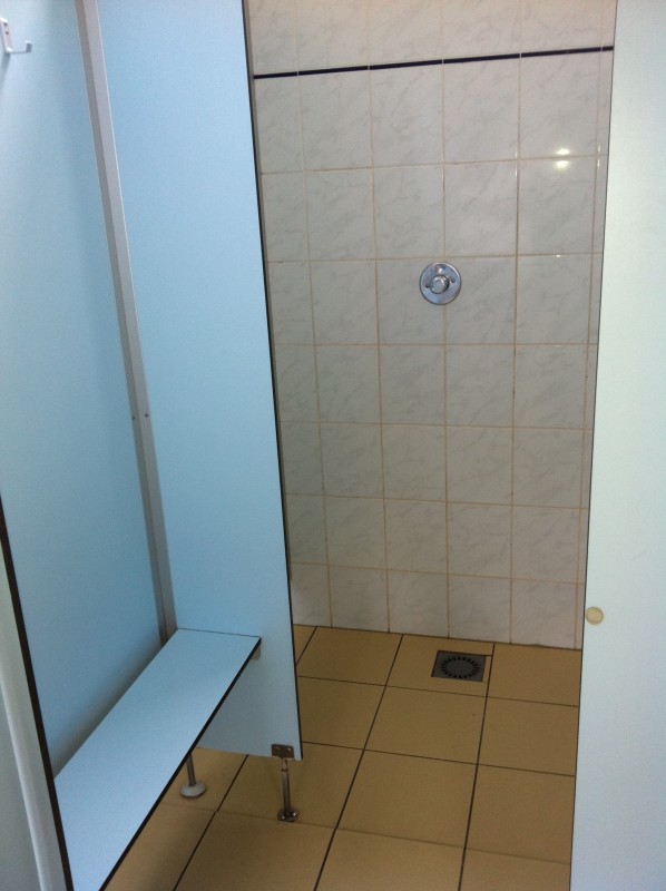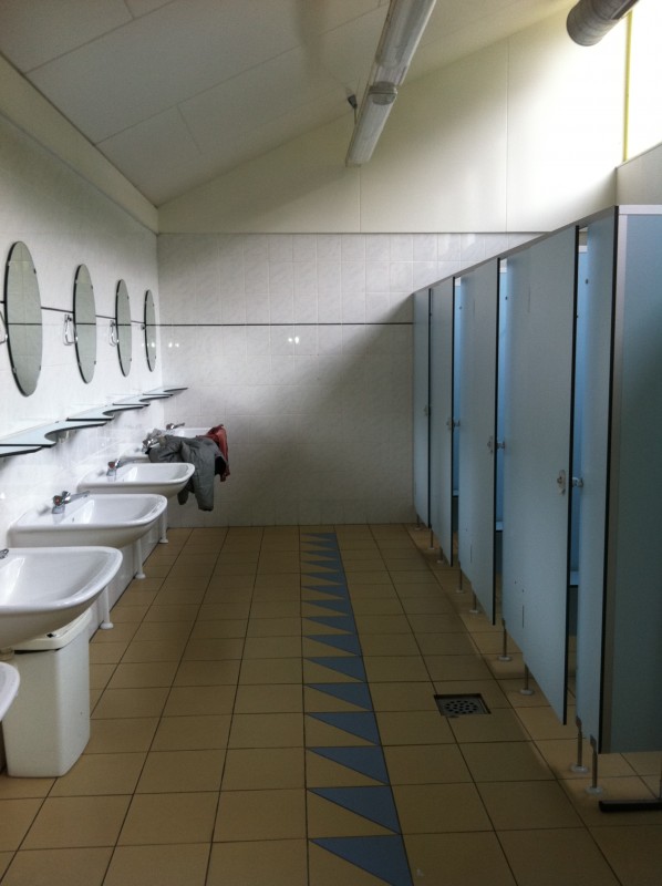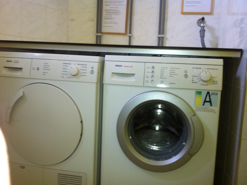 Es gibt auch Waschmaschiene und Trockner, im selben Trakt befindet sich auch eine Familiendusche und ein WC für Behinderte.