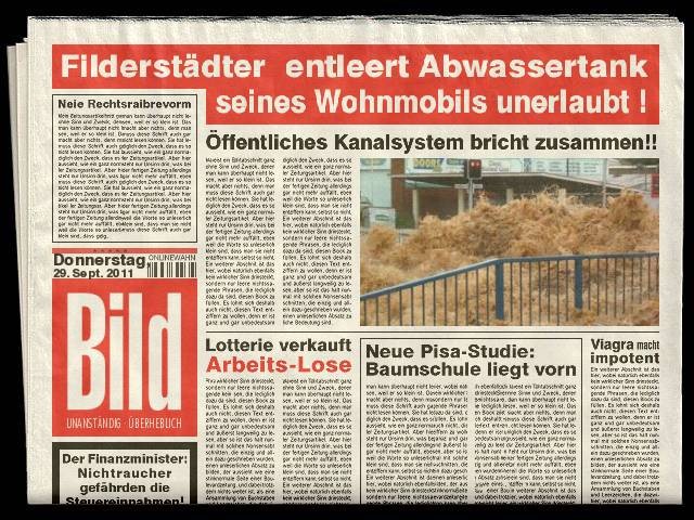 Ich finde das mit der Bildzeitung natürlich auch lustig, wenn es um Chemie aus der WC Anlage geht, in Verbindung mit kleinen Autobahntoilettenanlagen, kann ich mir schon vorstellen das es Probleme gibt wenn ein Dutzend Casetten mit Chemie entleert werden.