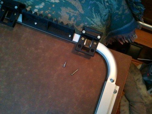 Was sehen meine schwachen Augen da?! Beide Kunststoffhalterungen, die auf den Aluminiumrahmen unter der Tischplatte aufgeschraubt sind, halten nur noch am letzten Fitzelchen. In das Aluminium sind vier Löcher mit 2mm Durchmesser gebohrt und eine Halterung ist mit 2,5mm Spax versucht worden zu verbinden, die andere mit noch minderwertigeren Schrauben. Eigentlich schade, macht nicht nur der Tisch, sondern der ganze Wagen sonst einen ordentlich verarbeiteten Gesamteindruck. Im Falle eines Aufpralls würde meiner Meinung nach der Tisch sowieso durch die Gegend fliegen. Aber schon das Gewicht des Frühstücktisches bei einer der nächsten Reisen hätte in Verbindung mit Heißgetränken gar üble Folgen haben können. Ein paar Gewindehülsen eingesetzt, oder statt Bohrlöchern Rohrschellen wären eine einfache gute Lösung gewesen. Da selbige Tische auch in „Familienmobilen“ verdübelt werden, muss damit gerechnet werden, das Zwergenvolk darauf kraxelt oder der Tisch auch mal als Wickelkommode herhalten soll. Das liegt daran das Ärwin alle fähigen Leute abgezogen hat , die nun wieder an Älekto Ulis Hümer werkeln , und zur zeit halt nur sone Notbesetzung bei den Carados Arbeitet (so auf 400€ Basis) :D also beschwere dich bei Älektro Uli . :D