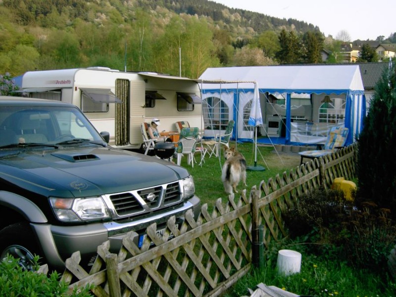 Wie man sieht, statt Vorzelt haben wir ein winterfestes Partyzelt da stehen, fest vertäut und gesichert. Das Teil hat letztes jahr 30cm Schnee verkraftet und alle Winterstürme. Ohne Vorzelt ist klasse, innerhalb von 15 Minuten hängt der Wohnwagen am Patrol und ist abfahrtbereit. Was man auf oben den Bildern nicht sieht, ist unser Gästewohnwagen "Patachon" ein kleiner Knaus Südwind 400 aus BJ 1973, aber noch mit TüV und Gasprüfung. Hier isser mit bei.