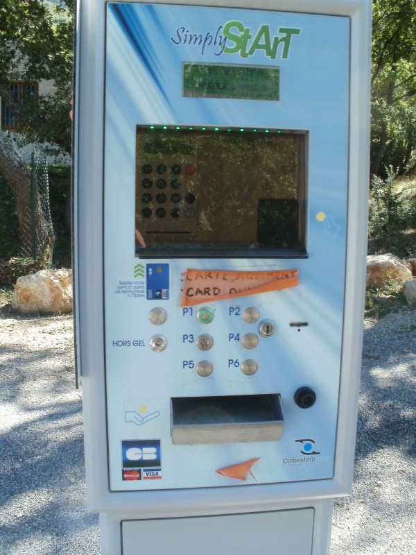 Leider ist er immer von 11 Uhr bis 15 Uhr geschlossen :roll: . Daher keine persönliche Erfahrung , nur Fotos gemacht ! Ca. 35 ebene Plätze auf schattenfreiem Schotter . Blick auf den See . SP liegt oberhalb der D 957 ! Neben Campingplatz Le Galetas , dort findet auch die Entsorgung statt ! CP ist von 1.4 bis 15.10 geöffnet ! Gegenüber des SP ist ein Tagesparkplatz beim Bootsverleih. ( Kanu und Tretboote). Stellplatz kostet 10 € zahlbar mit Kreditkarte und Card bancaire am Eingangsautomat mit Schranke : Zufahrt rechts vom CP: