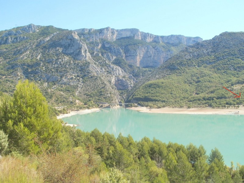 Hinter Brücke Eingang Verdonschlucht - Pfeil ungefähre Position des Stellplatztes :