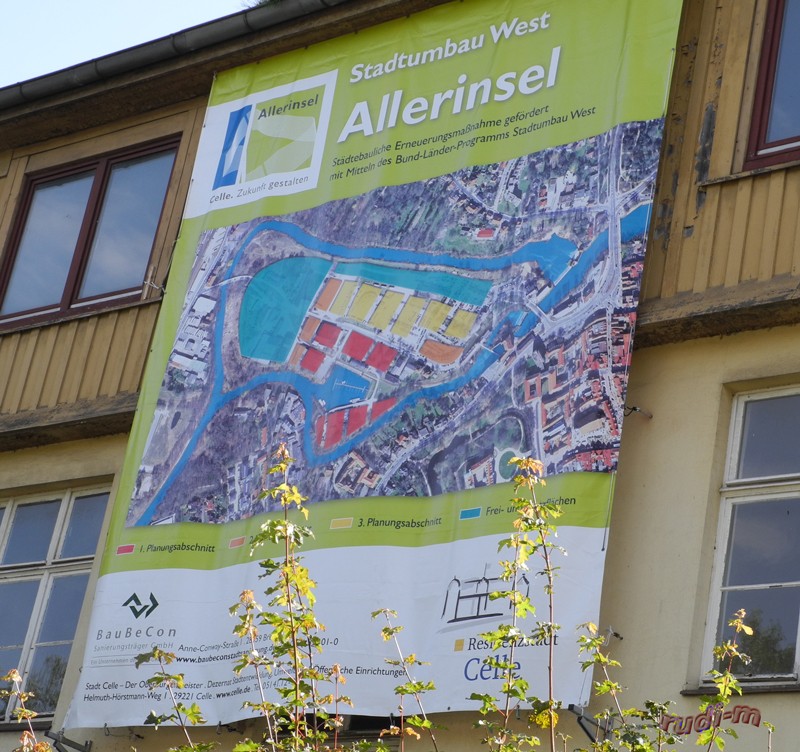 Am Plakat für den Umbau West (Allerinsel) sind die Bereiche und Phasen zu sehen. Es ist zu hoffen, dass die geplanten Maßnahmen (3. Planungsabschnitt – gelb) sich noch eine Weile hinziehen, und uns Stellplatz lange erhalten bleibt.