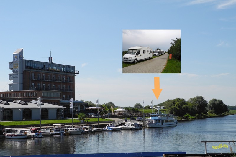 Am nächsten Morgen entsorgten wir, weiter ging’s zum nächsten Ziel, Dömitz an der Elbe. Am Stellplatz - Dömitzer Hafen bezogen wir einen Platz oben am Damm. Die Gebühren von 5€ incl. Strom mussten in der Hotel - Rezeption bezahlt werden.