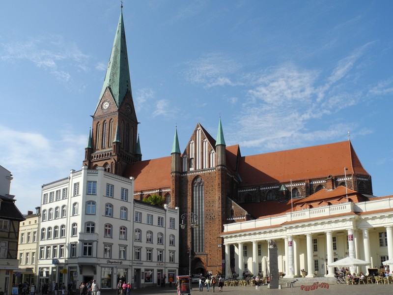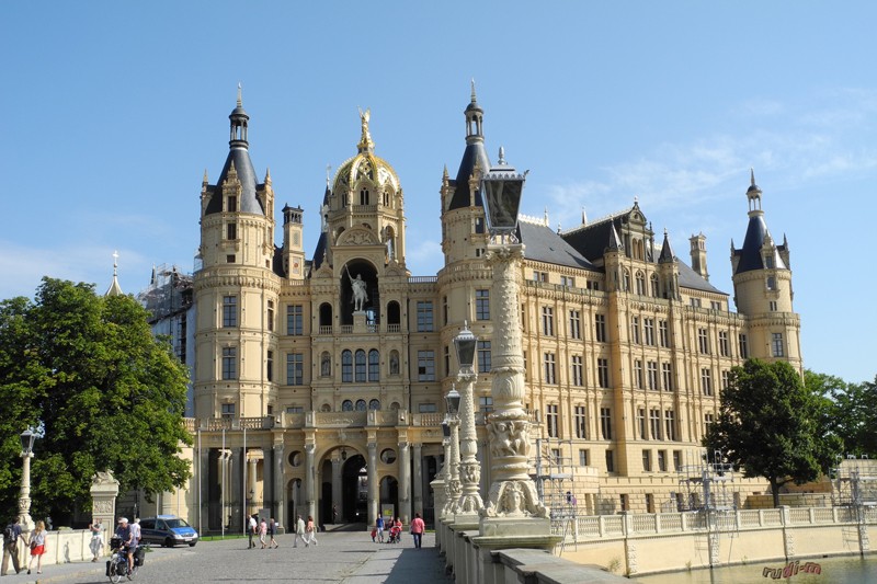 Dienstag 23.08 Zum jammern war keine Zeit, wir sind weitergefahren zur Landeshauptstadt – Schwerin. Nach den aussichtlosen Versuchen einen Stadtnahen Platz zu finden (der Parkplatz an der Werderstrasse war voll, beim Seglerverein mit seinen 4 Plätzen dito), haben wir in der Marina Nord einen Rasenplatz bekommen. Mit den Rädern sind wir zum Schloss gefahren.