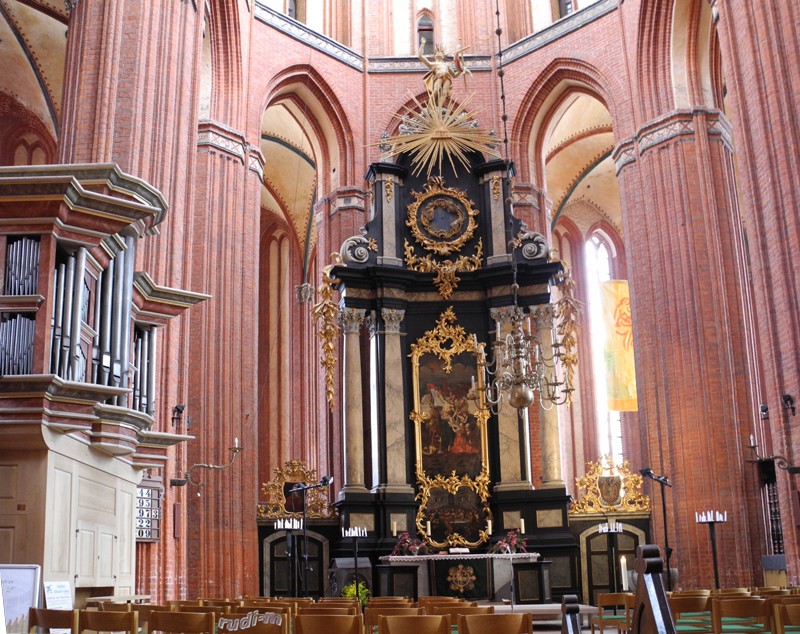 Die 2€ Eintritt in die Nikolai – Kirche haben wir gerne gegeben. Nachfolgend ein Bild der Kanzel von1611, dem Hochaltar von1480 und zum Schluss der Hauptaltar von 1708.