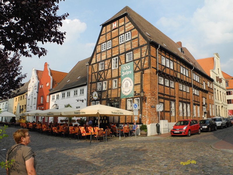 An diesem ersten Tag in Wismar gab es nicht nur Kirchen, nein am Heimweg lag das Brauhaus am Lohberg anno 1452. Es gab Wismarer Mumme mit Mecklenburger Braten(ein Rippenstück mit gefüllt mit getrockneten Pflaumen …..), die Portion war für einen Schwerarbeiter, aber lecker.