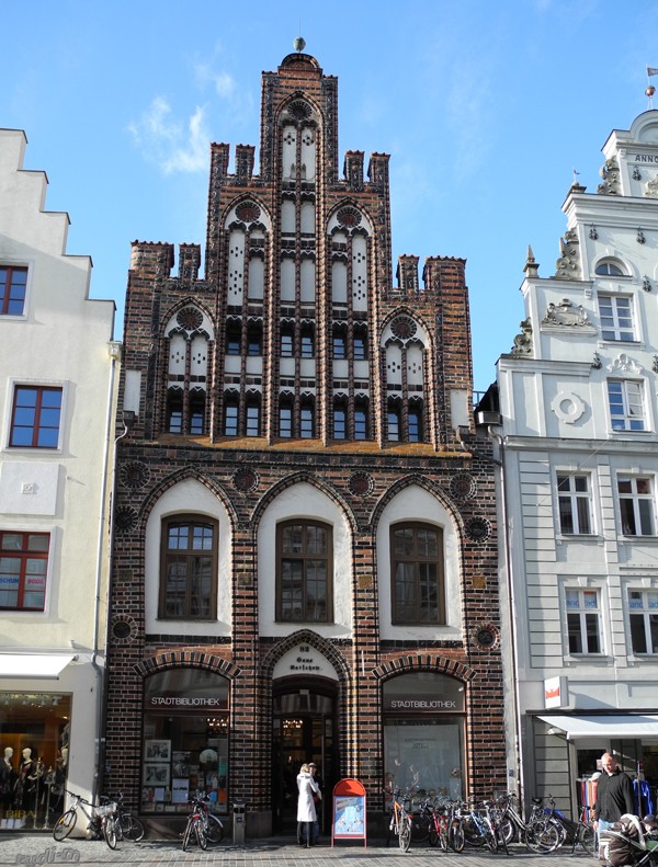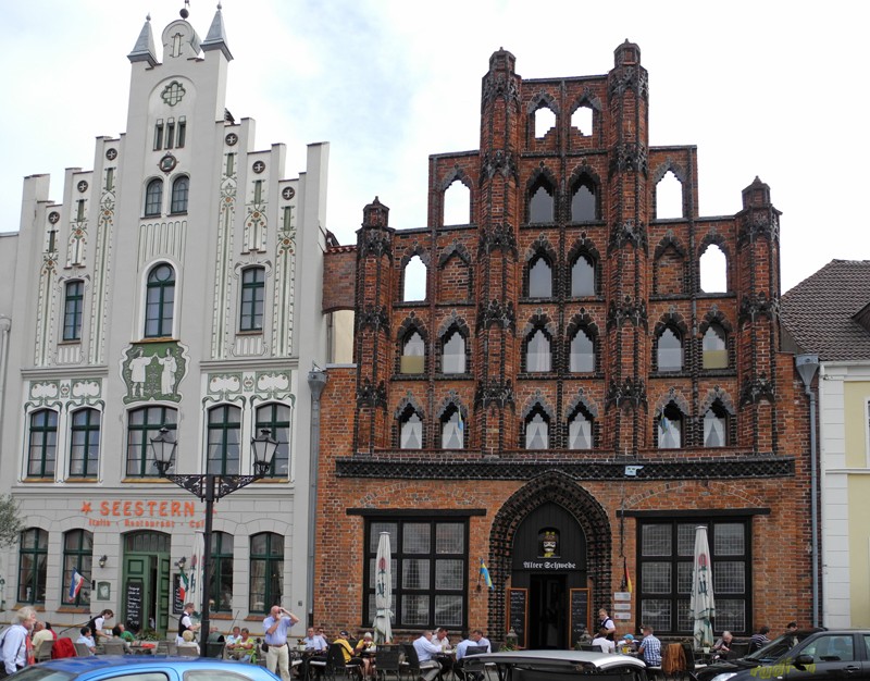 Die Fassaden der Bachsteingotik-Gebäude wie der Alter Schwede (erbaut 1380) und das Archidiakonat erbaut 1450 muss man sich ansehen.
