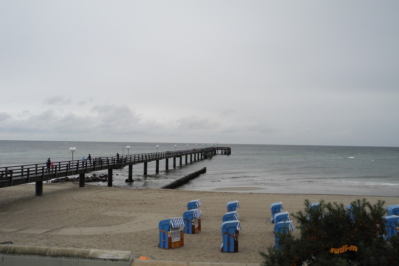 Die Seebrücke und der Strand sahen wetterbedingt trostlos aus, wir sind dann die Einkaufsstrasse weiter lang marschiert. Am Klassiker(Knuspriger Broiler) im Schnellrestaurant Hühnergott gab es nichts auszusetzen und in der Essenzeit konnte der nächsten Schauer durchziehen.