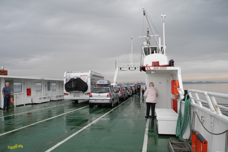 Mit dem Trödel und Fischtag im Fischerhafen und einer kleinen Radtour nach Putbus war der Sonntag ausgefüllt. Die par schönen Tage gingen zu Ende, abends fing es an zu regnen. Wir beschließen für den Nächsten Tag, bei regnerischem Wetter, ein größeres Stück zu fahren zwar nach Lübbenau im Spreewald. Wir nehmen die Glewitzer Fähre, unsere erste Fährfahrt mit dem Mobil.