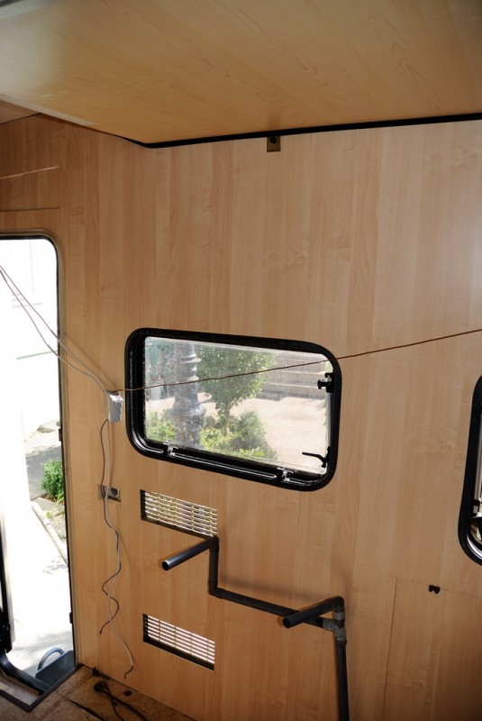 Beim Leisten verlegen hätte ich beinahe die beiden Halteleisten für die Hängekästen (braune "Schatten" an der Aluwand) einzubauen vergessen; merke: eigene, zusätzliche Leisten ersetzen die originalen nicht! :D