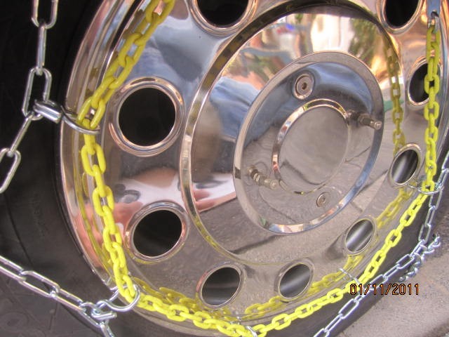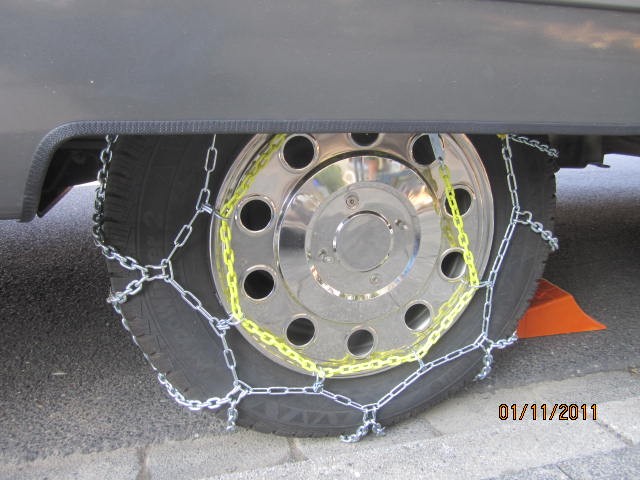 Jedoch habe ich ein Problem feststellen müssen. Bedingt durch die Reifengröße (205/75 16) sowie dem Erfordernis der montierten Radblenden (halten die Ventile) spannt die Kette über eben diese. Hier scheint mir ein "Kollateralschaden" vorprogrammiert!