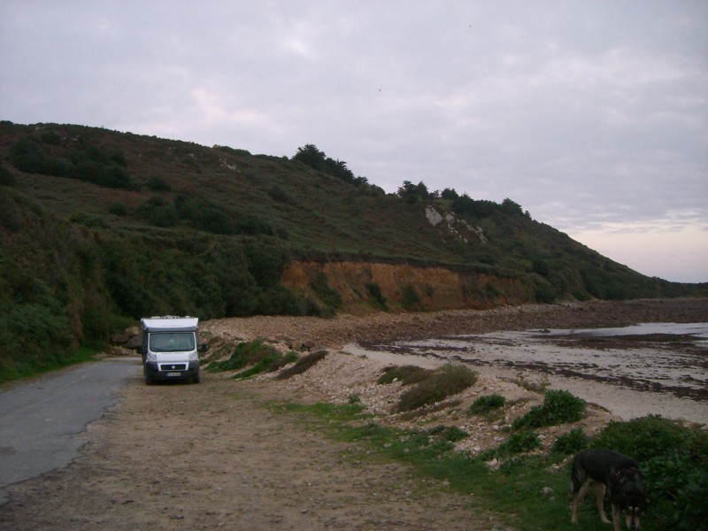 Das Wetter sieht wieder besser ist. Wir folgen der Küste, besuchen St.Pol de Leon, wollen in Roscoff bleiben, leider ist der Stellplatz nicht mehr. Wir parken halb-legal am Hafen, neben einigen französischen WoMo’s und schauen uns erstmal den Ort an. Schön ist es, aber ohne Stellplatz… Nach Mittagessen geht’s weiter über wunderschöne Küstensträßchen bis wir auf einen privaten Stellplatz in Goulven einchecken. EUR 5 incl. Strom, V/E und einem leidlich sauberen Häuschen mit Dusche, Toilette und Spülmöglichkeit.