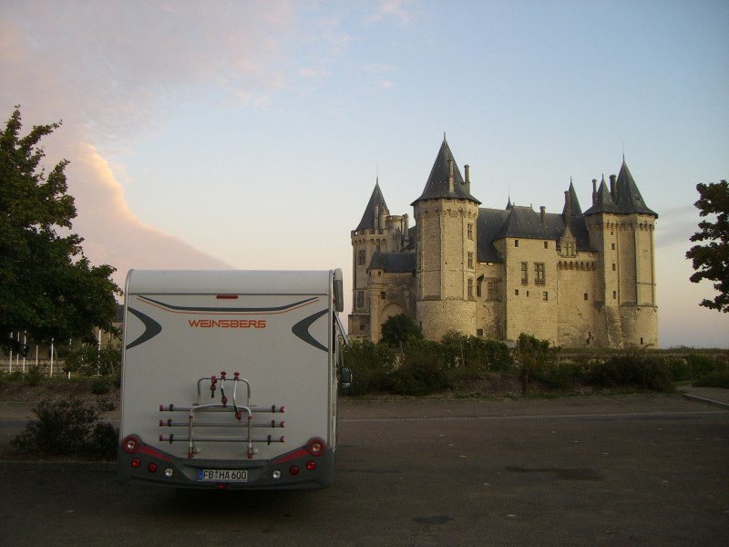 Wir stellen das WoMo mit Kira drin an der Notre Dame des Ardillieres ab und schauen uns im Ort – sehr sehr schön – um. Erster Stopp ist das Schloss. Dort steht auf dem Parkplatz ein WoMo. Wir schleichen 3 mal im Kreis: kein Verbotsschild – zumindest nicht da, wo das WoMo steht. Kurzentschlossen parken wir um