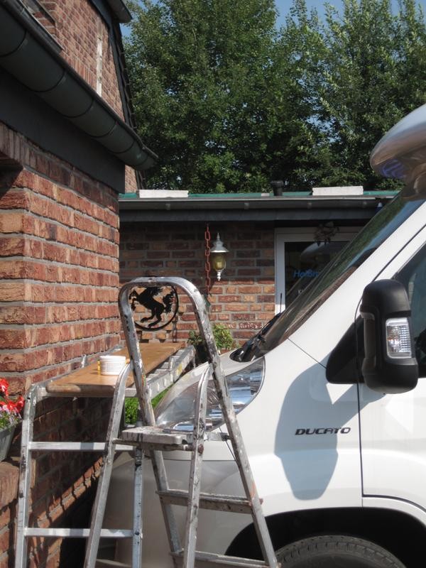ich habe den vorteil, das mein Womo auf einem platz steht, wo es auch gerüste gibt... also gerüst etwas höher als die motorhaube gebastelt, bolen drauf und gut ist