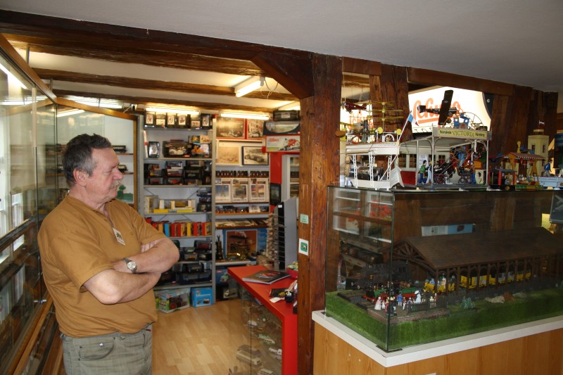 Erst wenn man den Laden betreten hat wird darauf hingewiesenn, das sich im Obergeschoss ein Museum befindet. Einerseits für Puppen und Teddy`s, andererseites für altes historisches Blechspielzeug aller Art. Man kann die Titanic bewundern, die über drei Räume ihre Bahnen zieht, Dampfmaschinen, Aufziehmodelle, eine große Modelleisenbahn, mit richtigem Wasser löschende Feuerwehrleute und unzählige andere tolle Sachen bewundern.