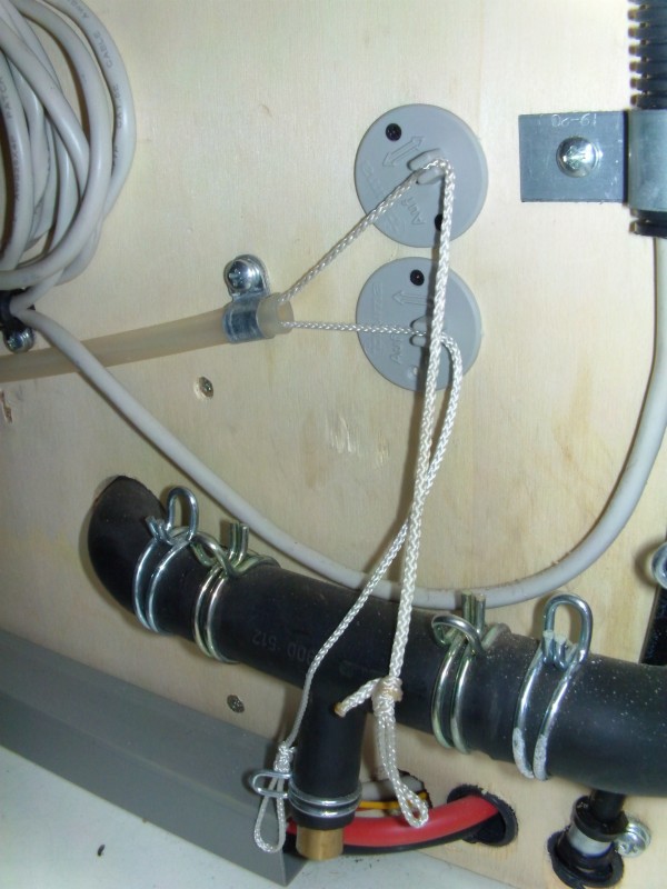 das sieht ganz nach Strangsperren für eine Warmluftheizung aus. Hat Dein neues Womo denn außer der Alde- noch eine Zusatzheizung, die wie die Truma Warmluftheizung arbeitet, also mit Luftkanälen? Wenn die Schnur aus der grauen Klemmung heraus ist, kannst Du durch Zug oder durch etwas Lösen der Schnur eine Klappe bewegen, die normalerweise bei Warmluftheizungen einen Luftstrang sperrt. Die Erklärung für eine etwa vorhandene zweite Heizung wirst Du Dir ja selbst geben können, ich kennen Dein Modell nicht. Moin Moin Werner,