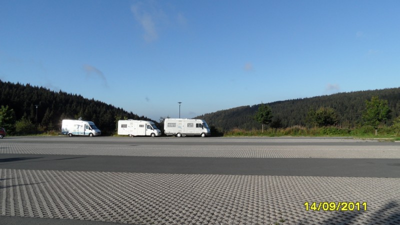bei diesem SP handelt es sich um ein Großparkplatz. Als wir im September dort waren, war er sehr leer. Man hat einen herrlichen Blick. Der Parkplatz liegt direkt neben dem Rennsteig. Es kann also sofort gewandert werden. Die Gebühr kann am Automat oder auch im Hotel "Haus Oberland" bestritten werden (sehr gute Küche). Es ist auch ein Erlebnisbad in der Nähe (nicht besucht). Hier einige Bilder: