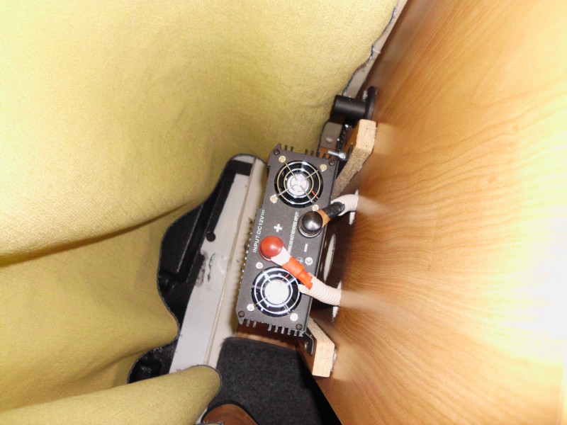Was ich nicht möchte ist den Wechselrichter Huckepack an die Sitzkonsolen zu schnallen. Die stehen bei mir beide frei und sind ständig im Sichtfeld. Zudem ist die Tür bei mir auch noch genau hinter dem Beifahrersitz. Das erhöht dann die Chancen das man auch noch dauernd dagegen läut.