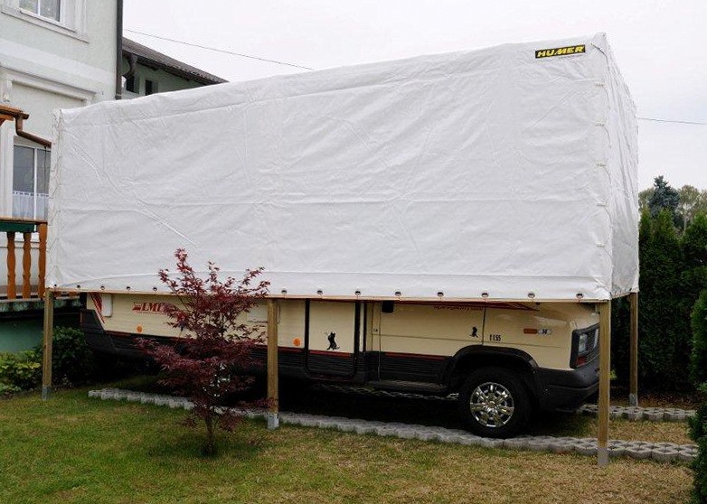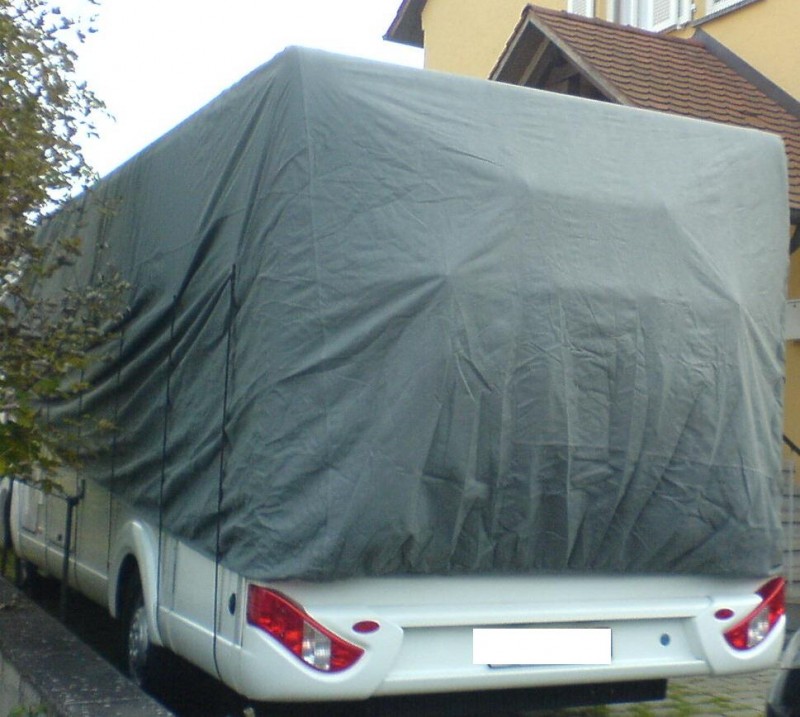 Inpraxi, ich habe mir eine Plane 10X3 m im Baumakt Hornbach gekauft und damit habe ich mehrere Jahre ab Oktober bis März meine Womo eingewickelt. Ich achte nur darauf , dass ich es zudecke wenn es trocken ist.