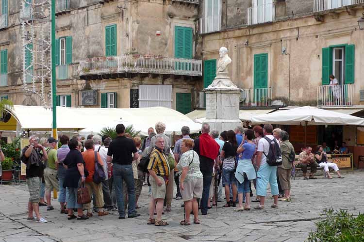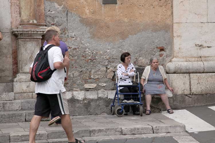 Herrlicher Tiroler Bauchspeck mit Spiegeleiern versüßen uns gleich nach einer kalten Dusche den Morgen. Internet über 3 funktioniert weder bei Gerhard noch bei mir. Nach dem Frühstück wollen wir die Stadt Tropea besichtigen, wir erklimmen die Stufen über einen Felsabbruch und stehen mitten in der Altstadt.